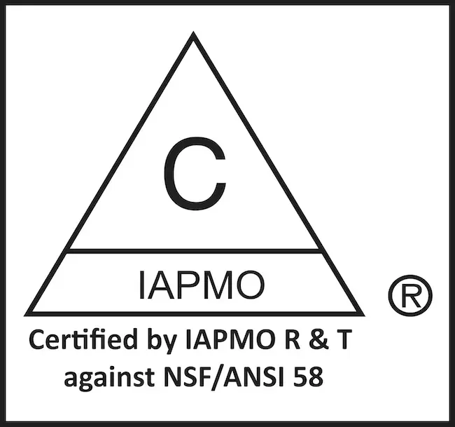 IAPMO R&T Certified against NSF/ANSI 58 for the reduction of: Barium, Cadmium, Copper, Fluoride, Hexavalent Chromium, Lead, Arsenic (V) (less than 300 ppb reduction), Radium 226/228, Selenium, TDS, Trivalent Chromium, Turbidity, and PFOA/PFOS.